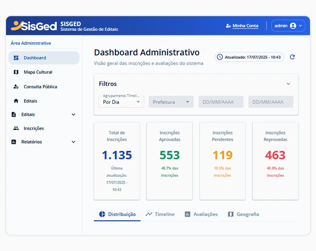 Explore o Brasil cultural com o SisGed: uma ferramenta moderna que reúne informações sobre editais, inscrições e ações culturais em um mapa dinâmico, acessível e voltado para gestores, produtores e agentes culturais.